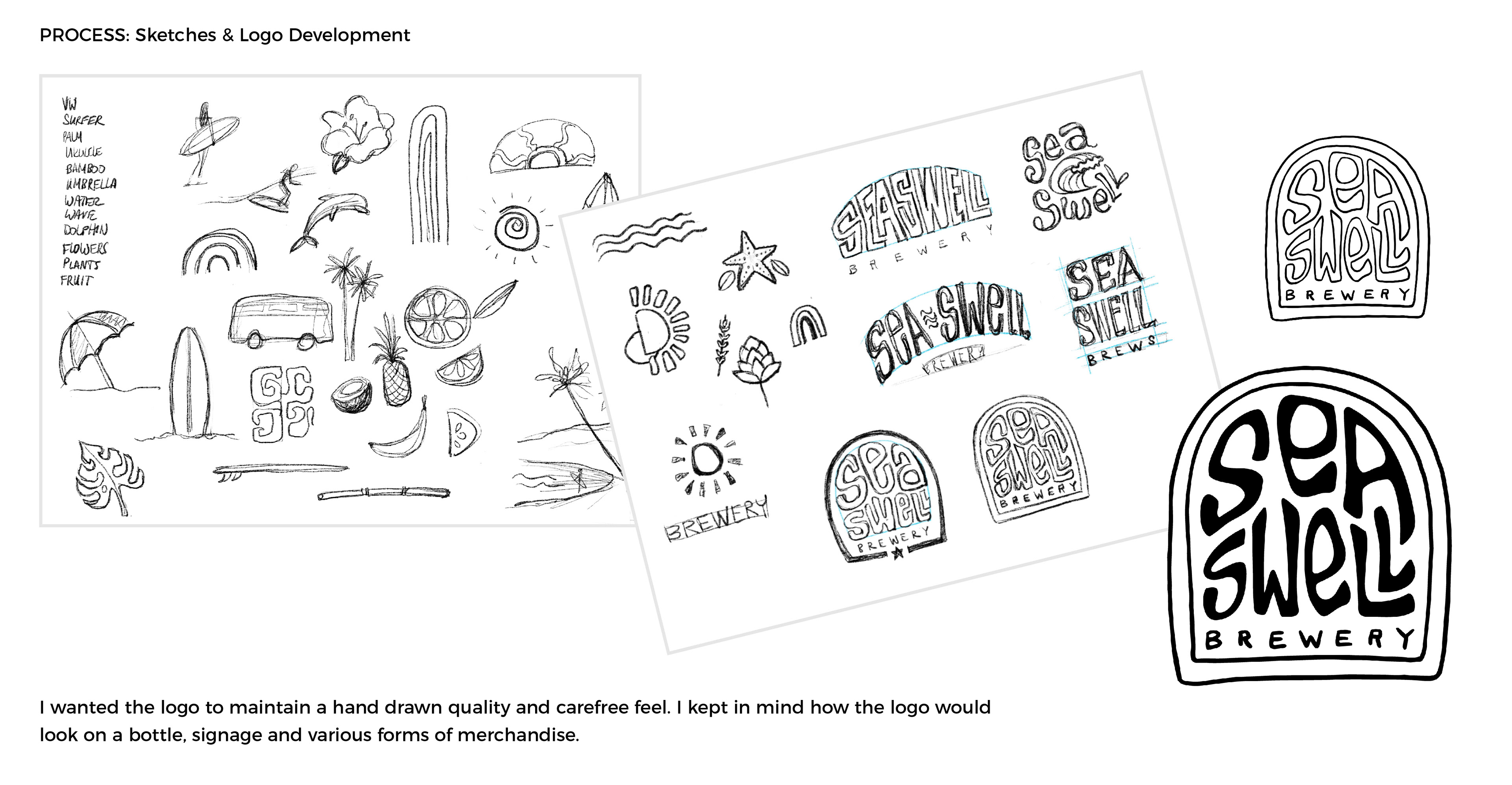 This concept project shows my process for creating a playful, tropical-inspired beer brand. I loved creating every element, from the hand-drawn background sketches to the merchandise mockups.
